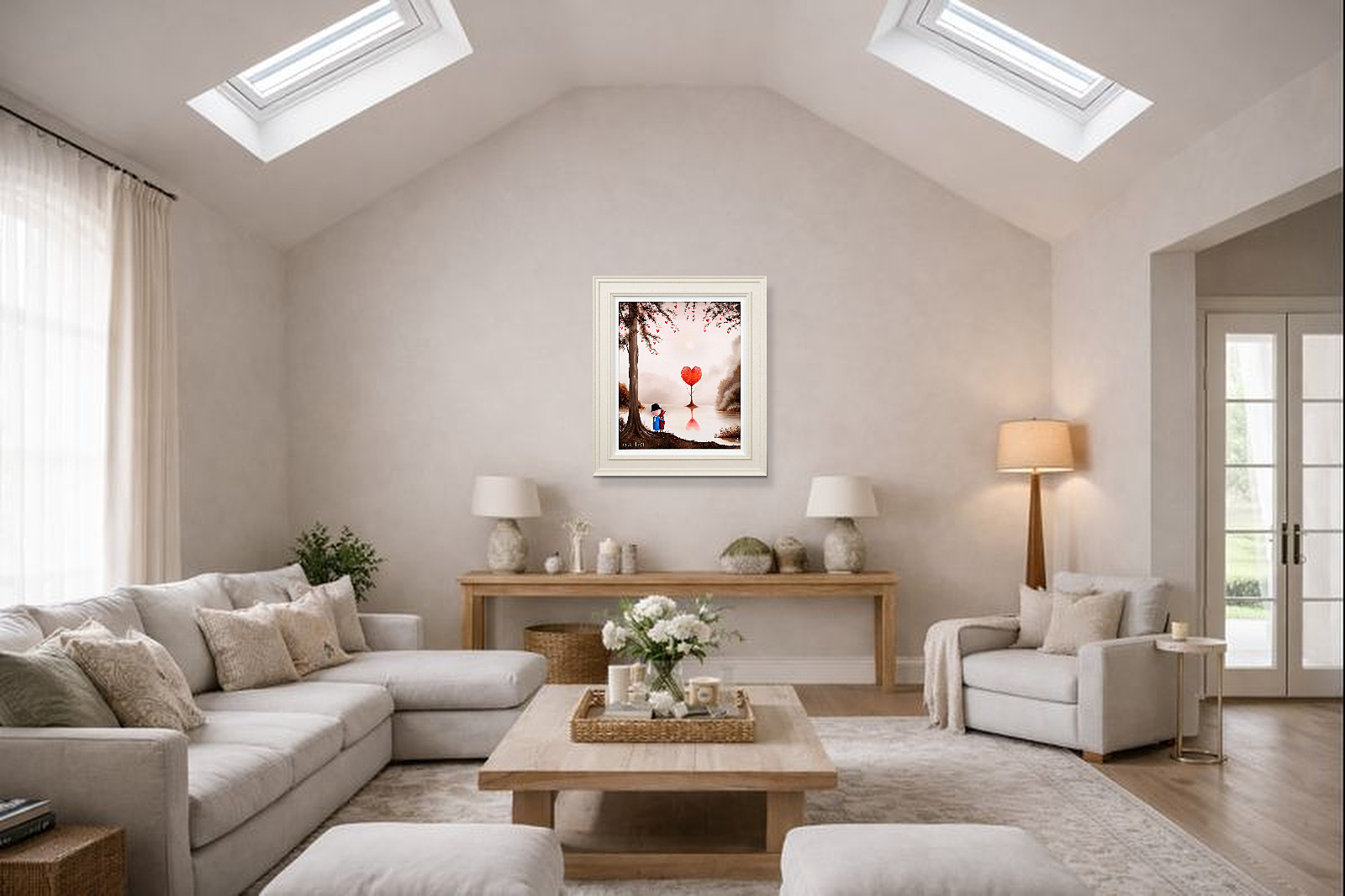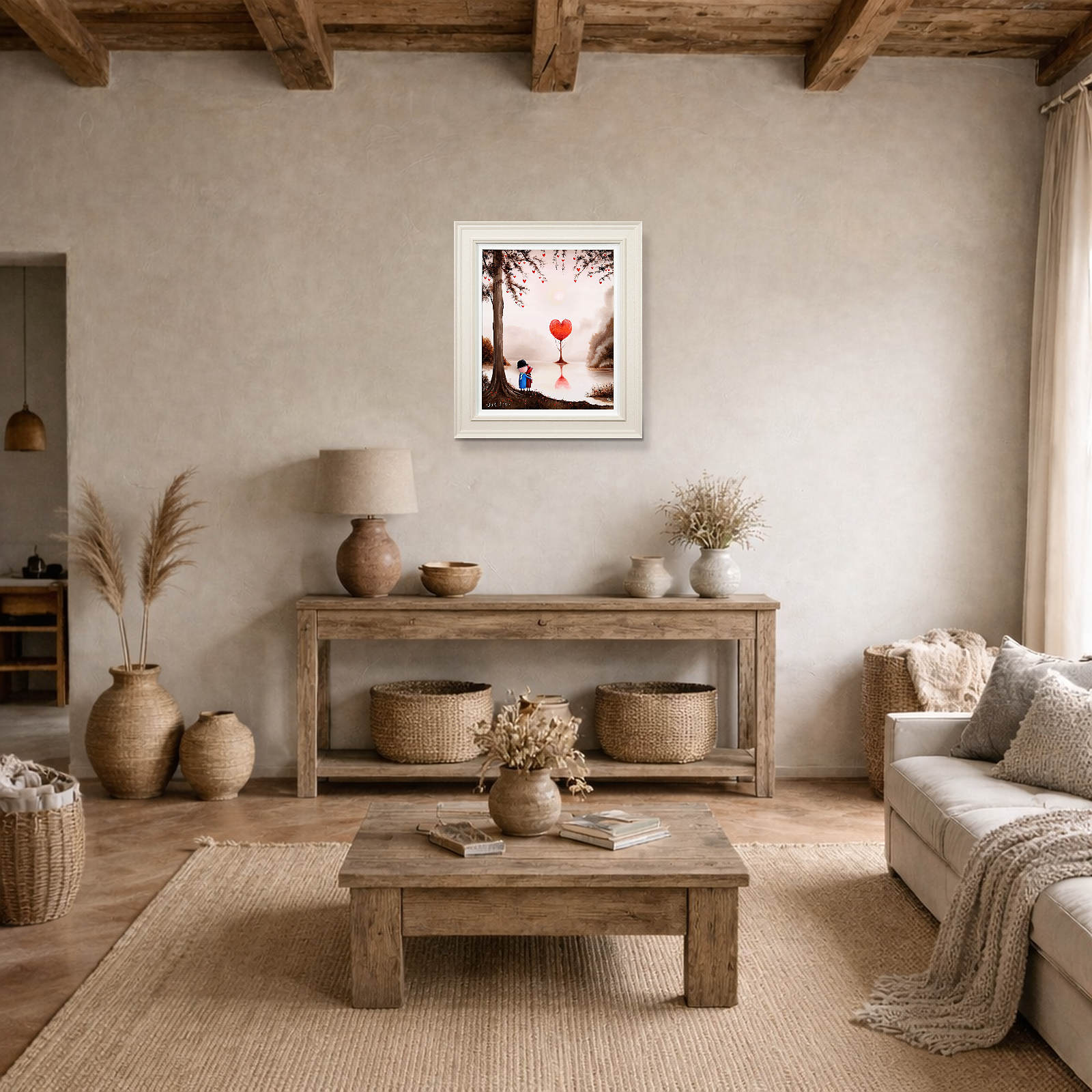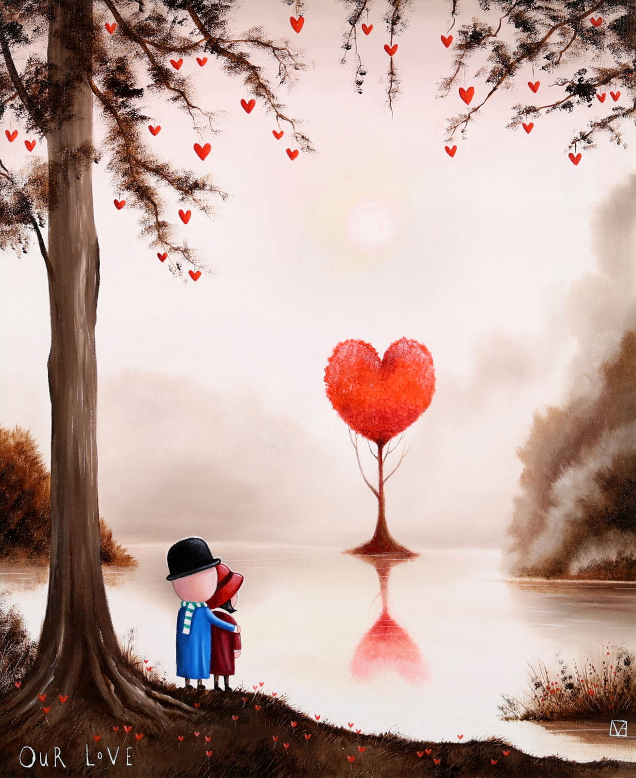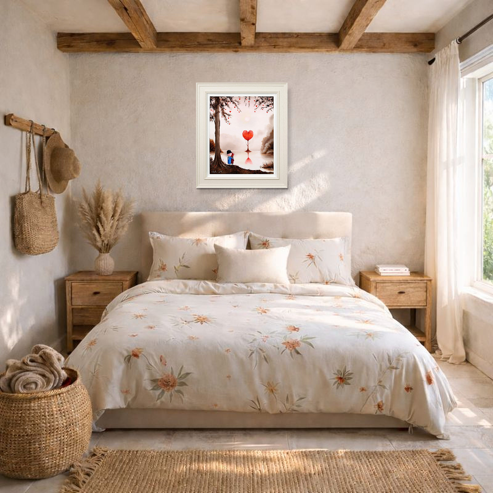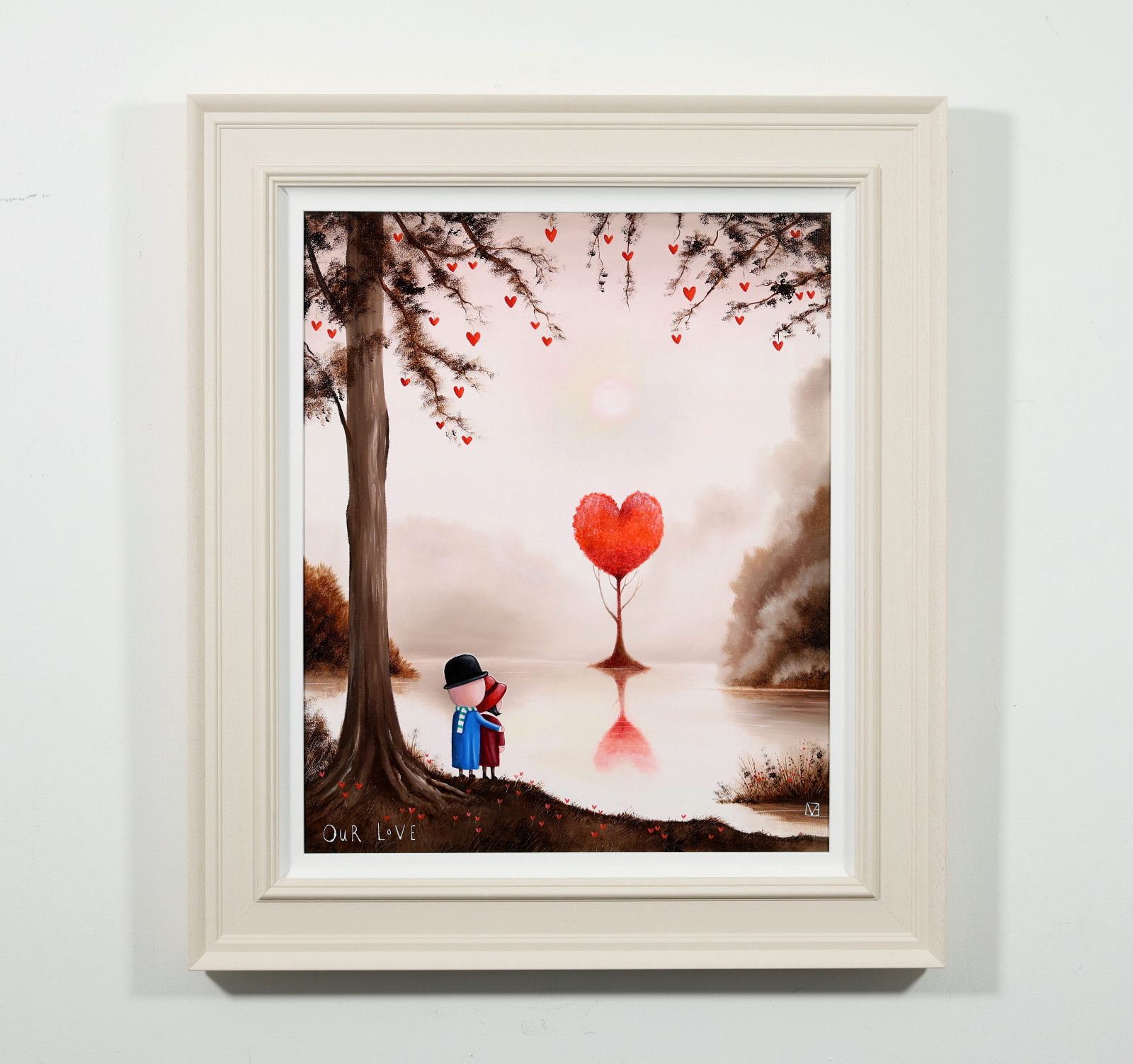 Romantic original oil painting by the popular artist Michael Abrams. Presented in a painted finish neutral tone frame as shown and ready to add some warmth and love to your home!