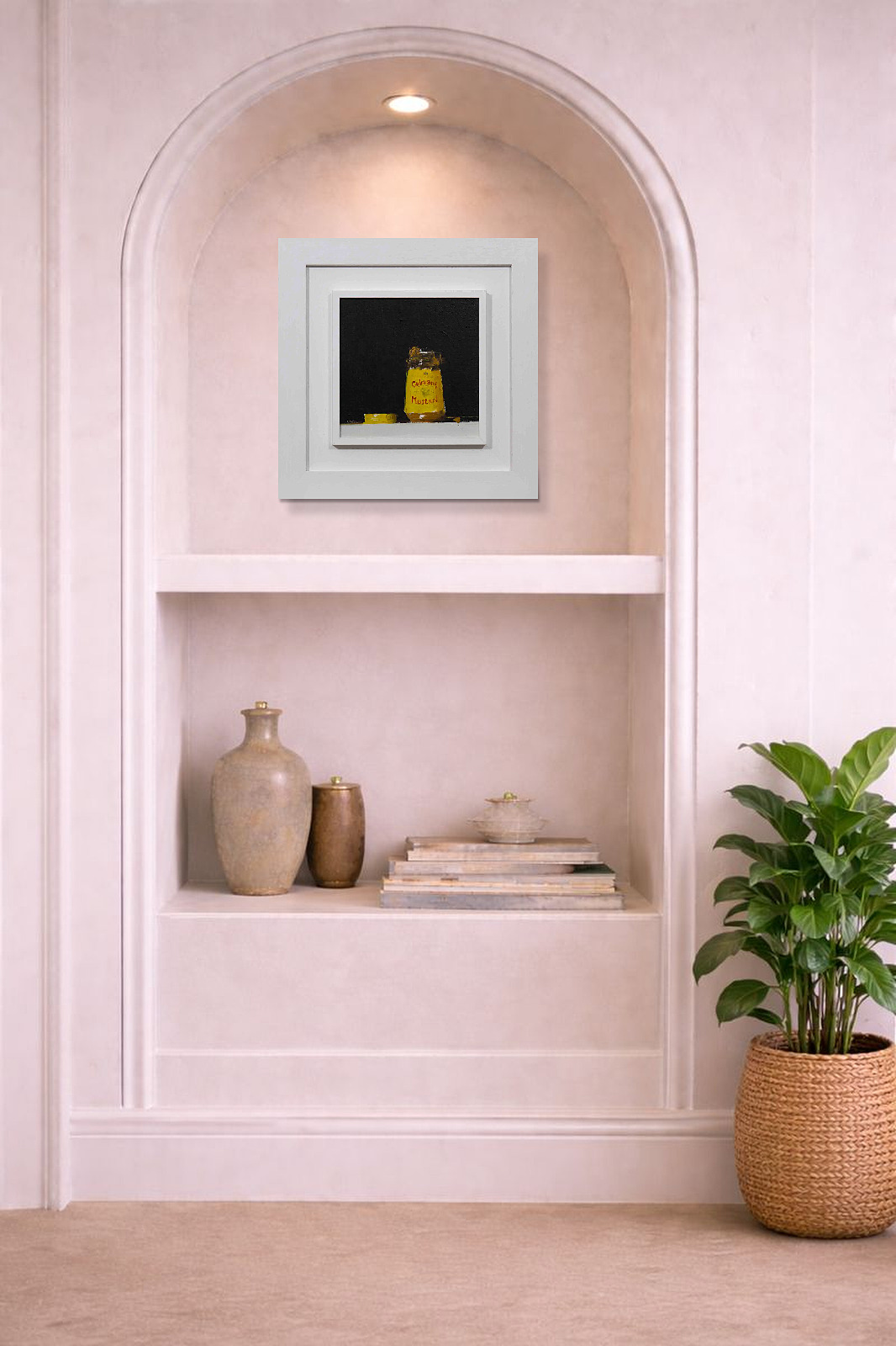 Contemporary still life painting from acclaimed British artist Neil Carroll. This original oil painting is presented framed in white ‘St Ives’ style moulding as shown and ready to hang.