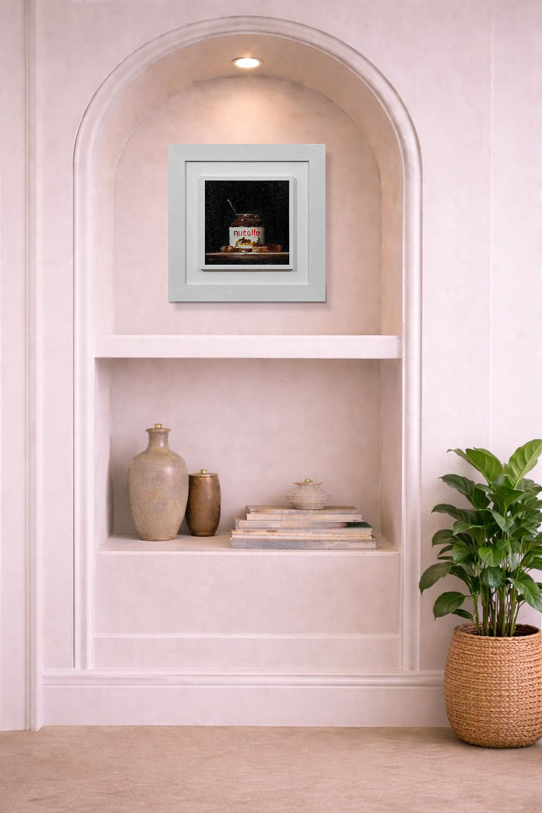 Contemporary still life painting from acclaimed British artist Neil Carroll. This original oil painting is presented framed in white ‘St Ives’ style moulding as shown and ready to hang.
