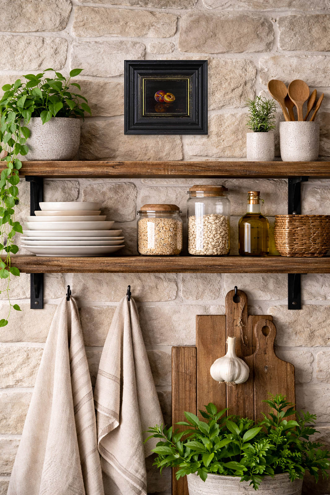 Beautiful still life oil painting contrasted against a dark background by Ronald Berger. Presented in a bespoke dark frame with gold edge as pictured.
