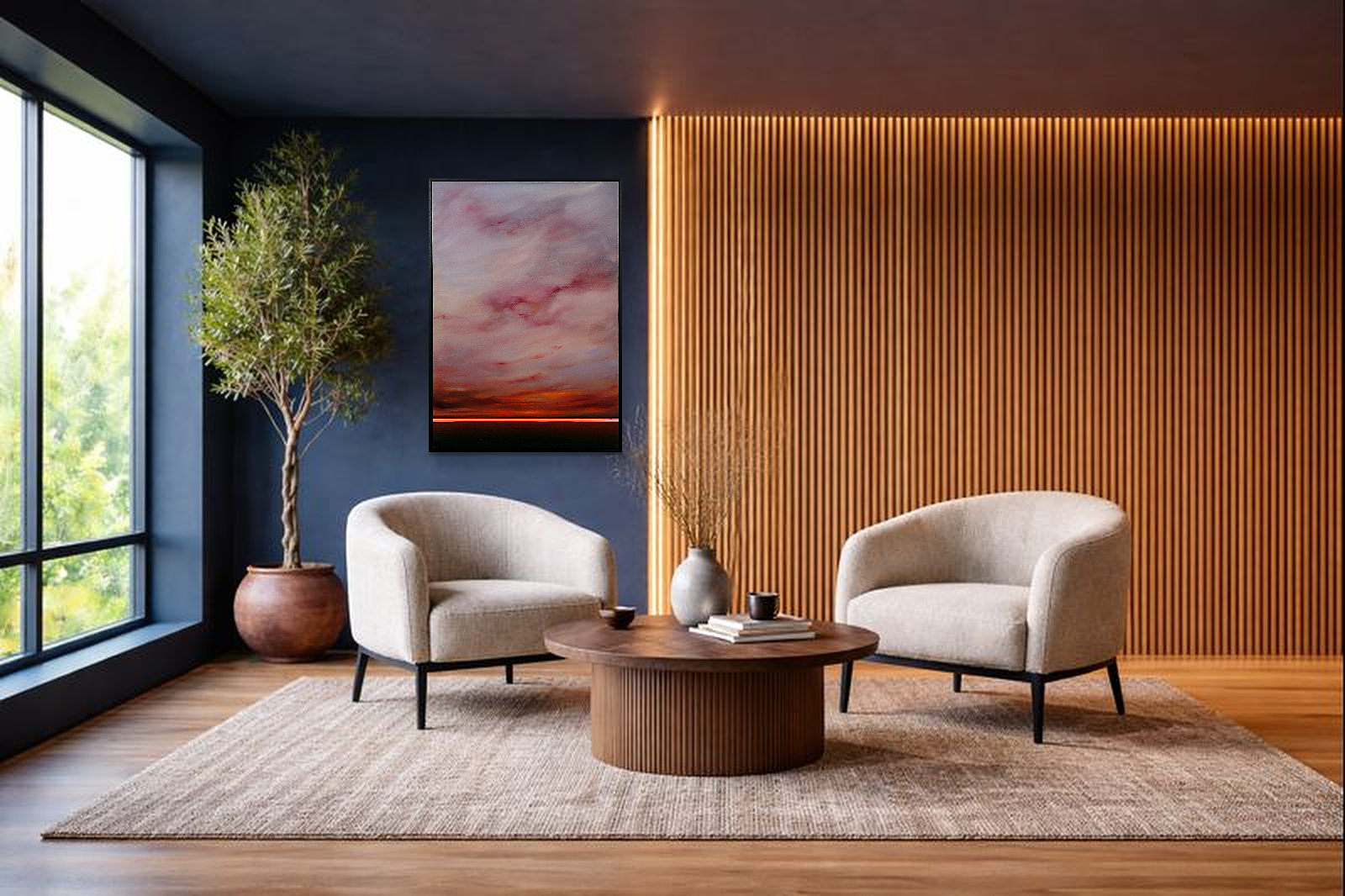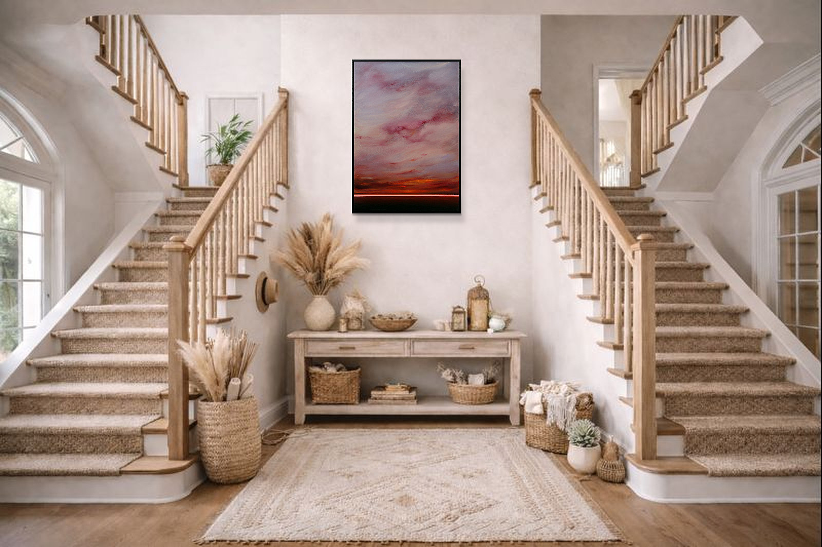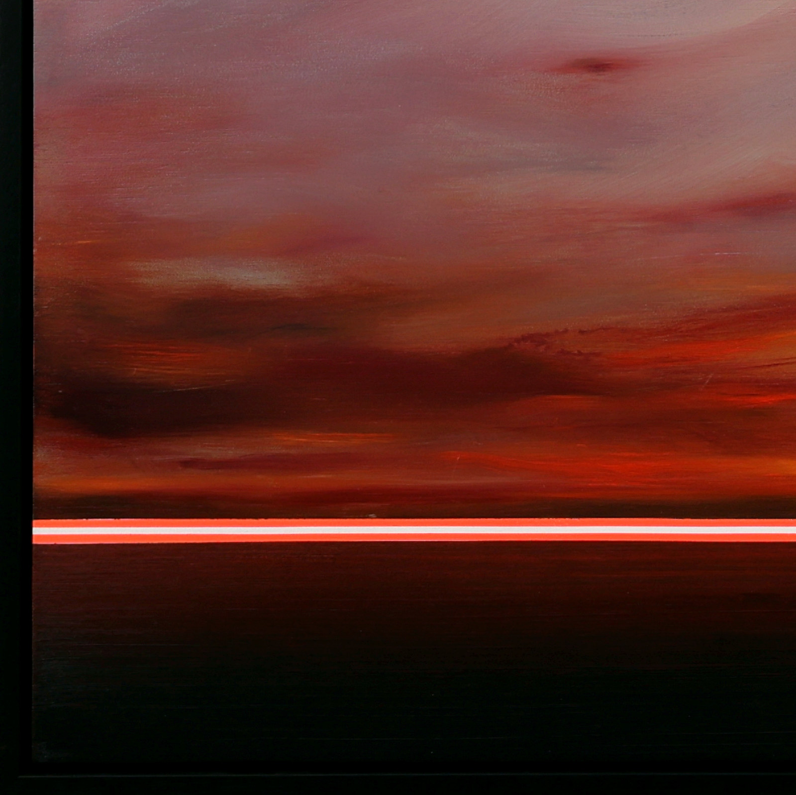 Calming abstract artwork by Spanish artist Ruben Calatayud forming part of his debut collection with Forest Gallery titled ‘Before Thought’. This stunning original painting combines acrylic, oil, spray paint and airbrushing to create layers of depth and unique atmospheric effects. Presented in a stylish contemporary black frame as shown and ready to hang.