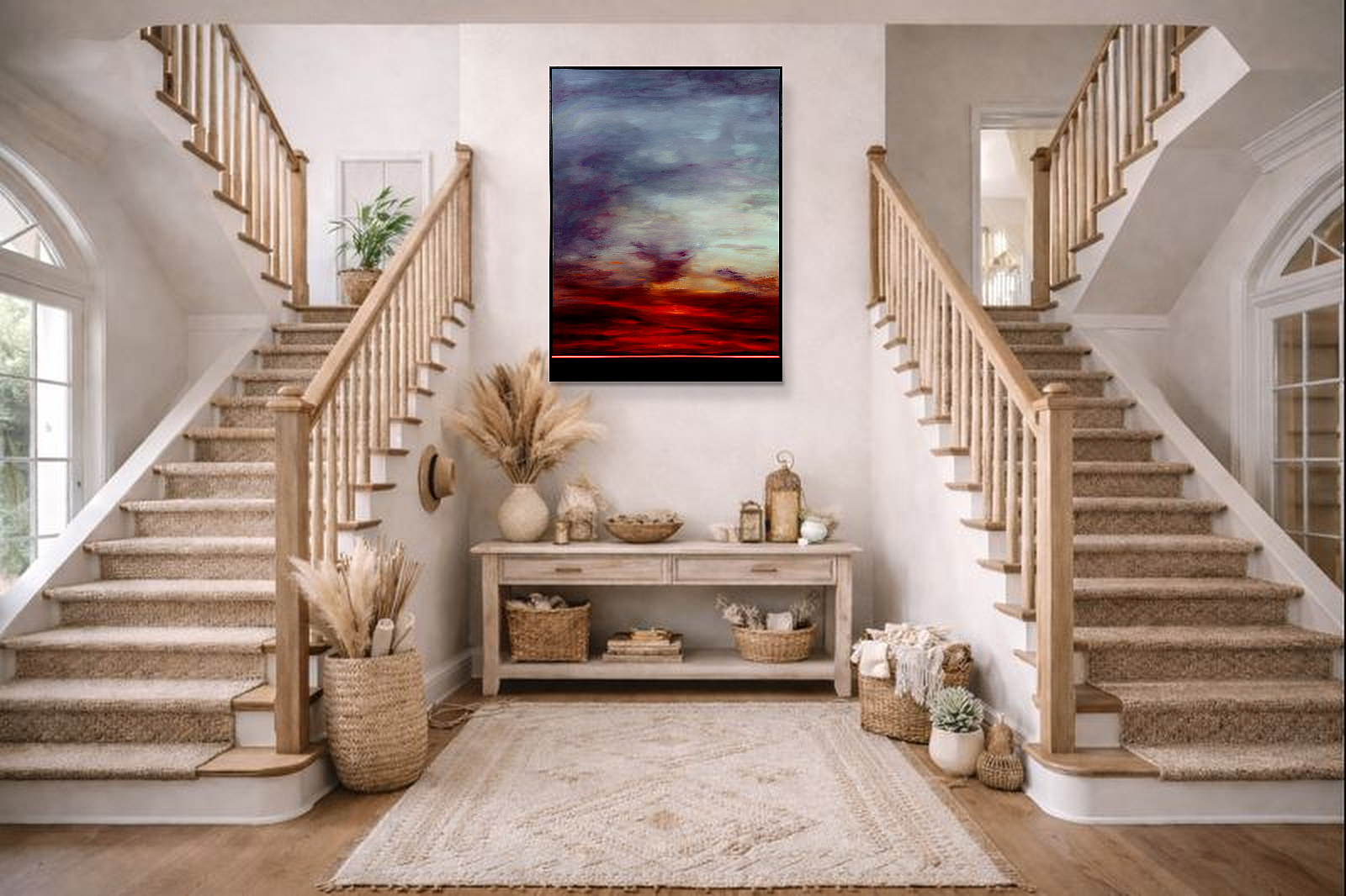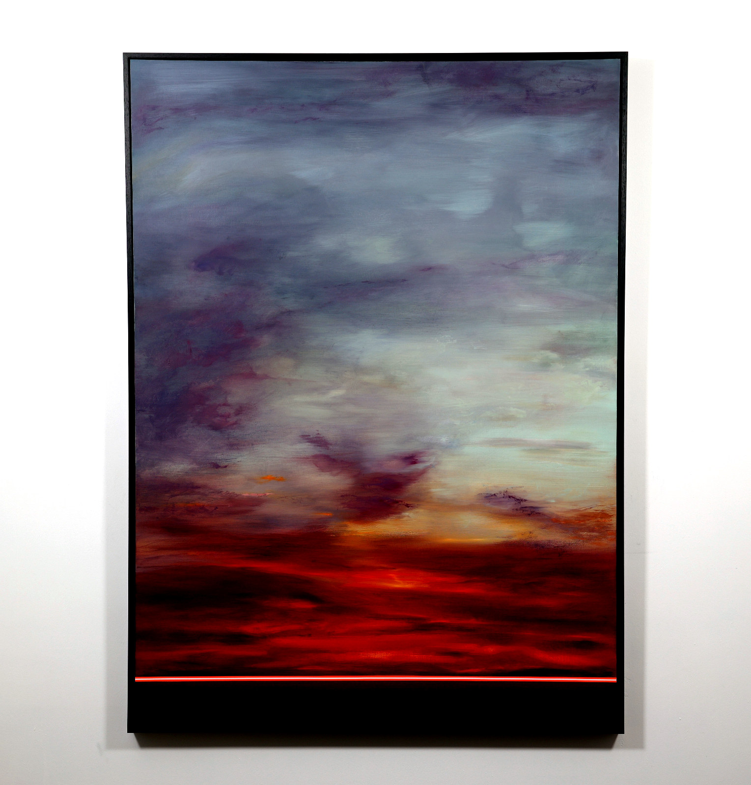 Calming abstract artwork by Spanish artist Ruben Calatayud forming part of his debut collection with Forest Gallery titled ‘Before Thought’. This stunning original painting combines acrylic, oil, spray paint and airbrushing to create layers of depth and unique atmospheric effects. Presented in a stylish contemporary black frame as shown and ready to hang.