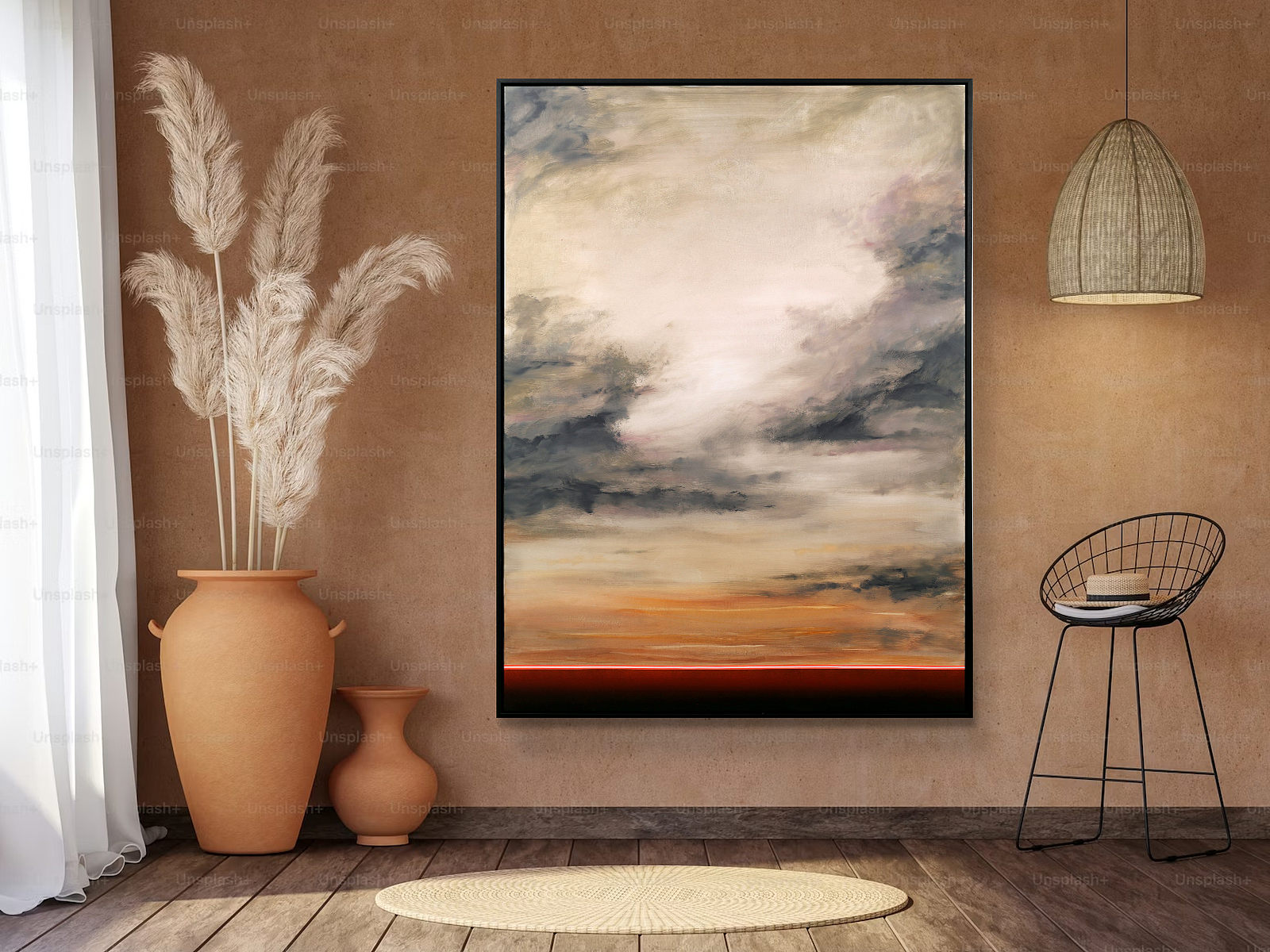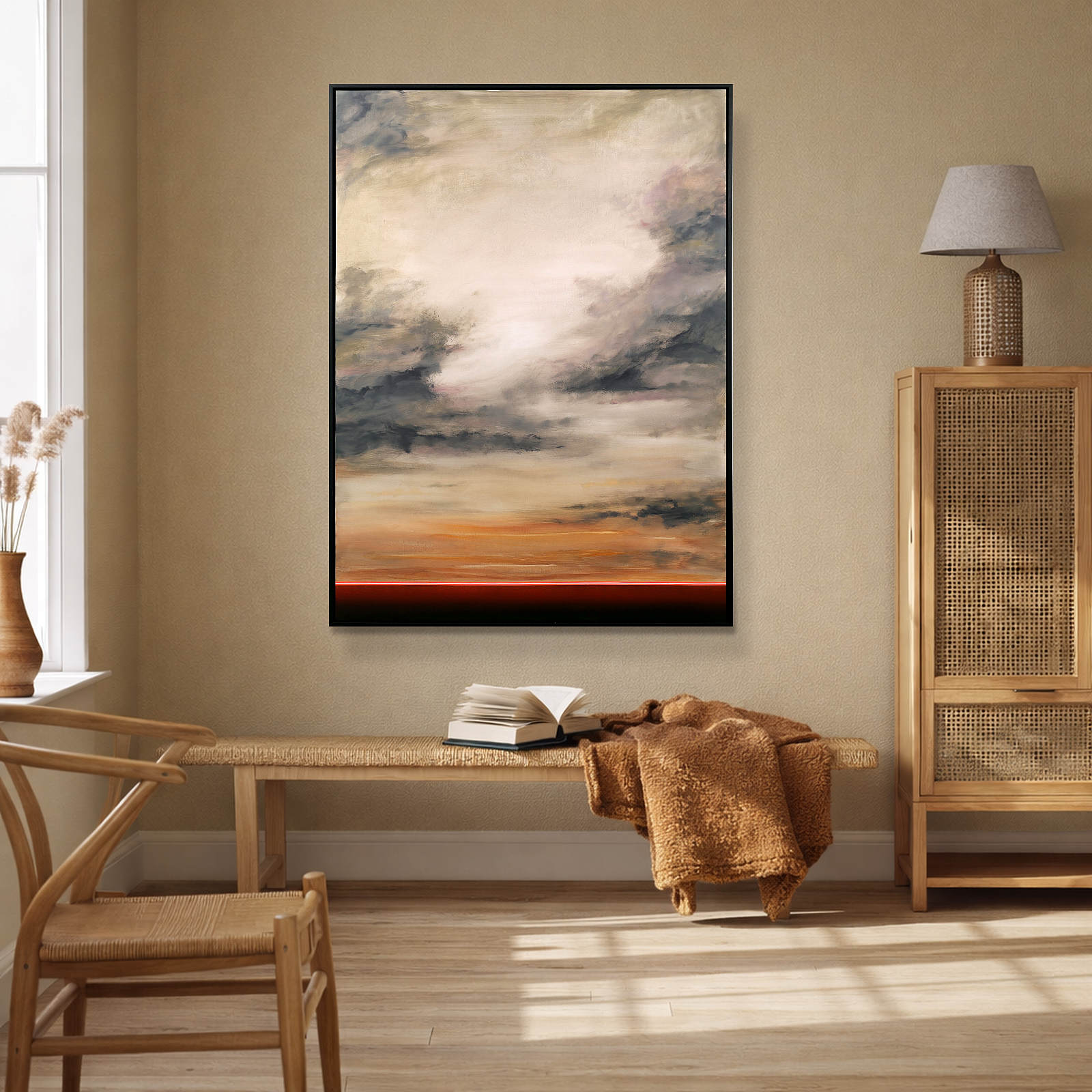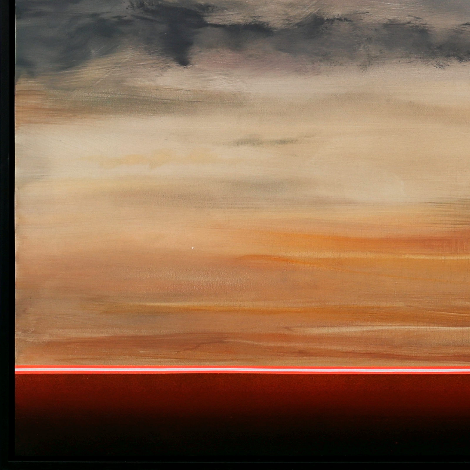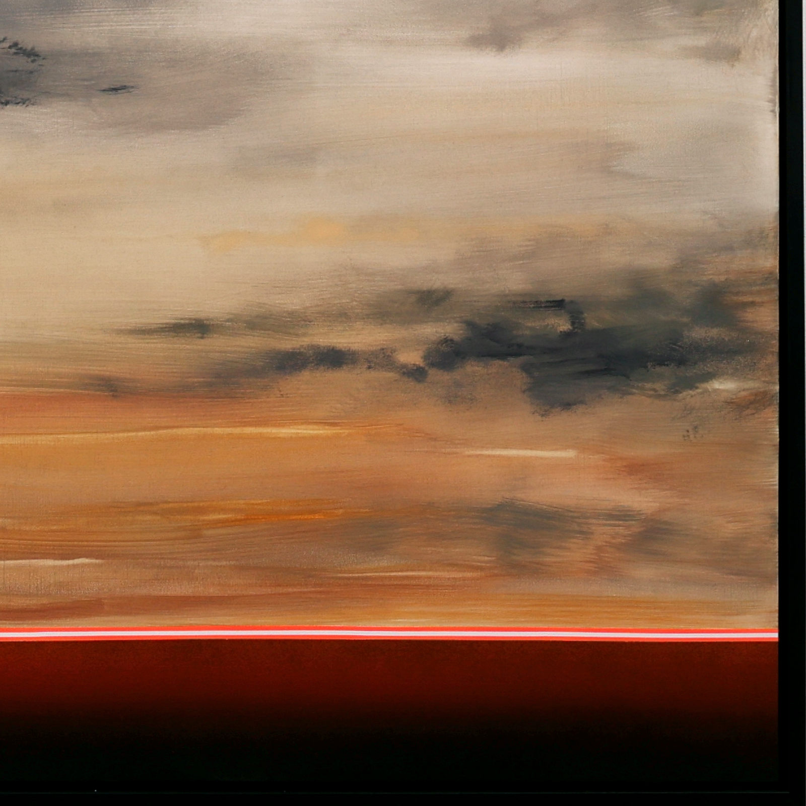 Calming abstract artwork by Spanish artist Ruben Calatayud forming part of his debut collection with Forest Gallery titled ‘Before Thought’. This stunning original painting combines acrylic, oil, spray paint and airbrushing to create layers of depth and unique atmospheric effects. Presented in a stylish contemporary black frame as shown and ready to hang.