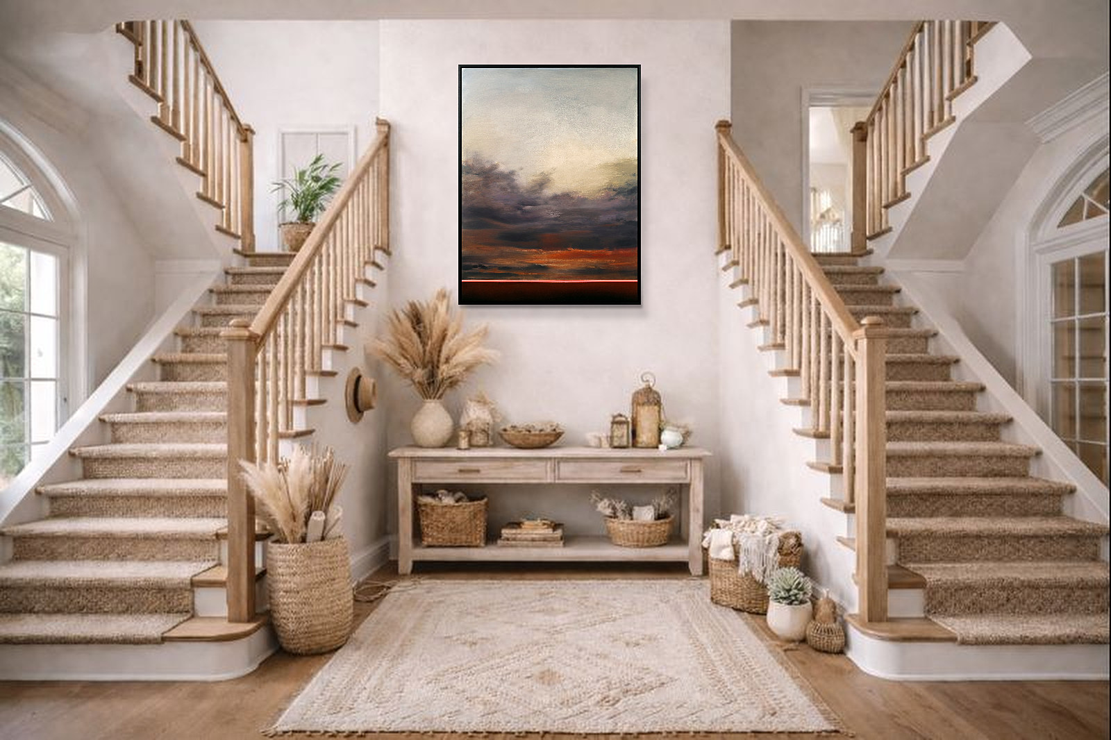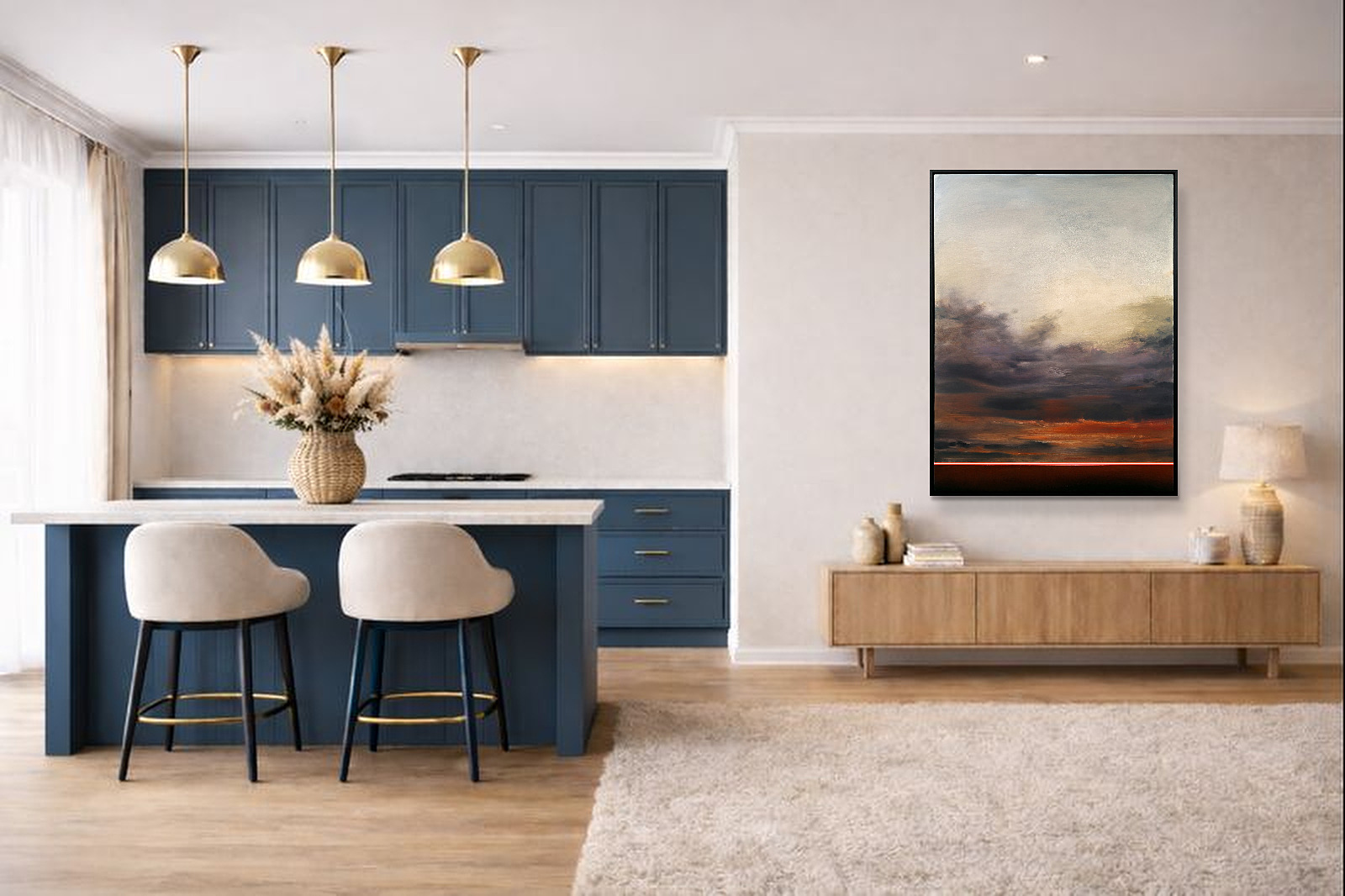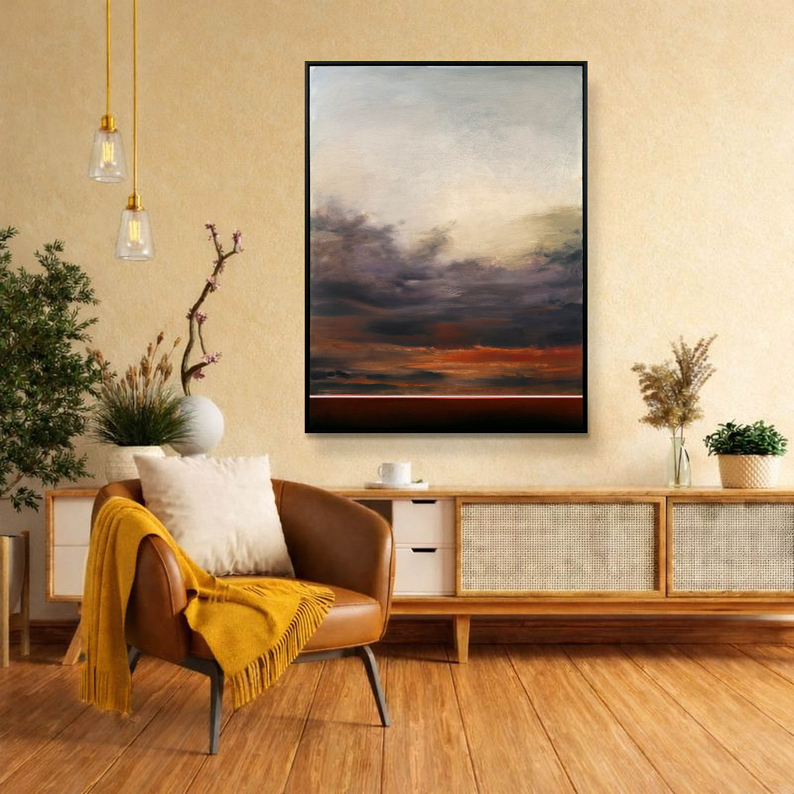 Calming abstract artwork by Spanish artist Ruben Calatayud forming part of his debut collection with Forest Gallery titled ‘Before Thought’. This stunning original painting combines acrylic, oil, spray paint and airbrushing to create layers of depth and unique atmospheric effects. Presented in a stylish contemporary black frame as shown and ready to hang.