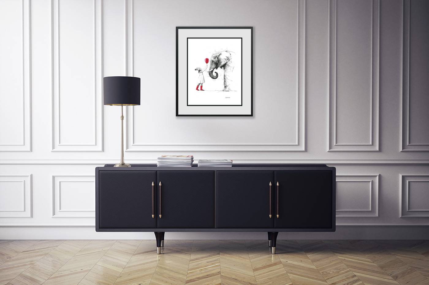 Playful limited edition made up of stylised lines and hand signed and numbered by the artist. Presented mounted and framed as shown with a slim black frame and ready to hang.