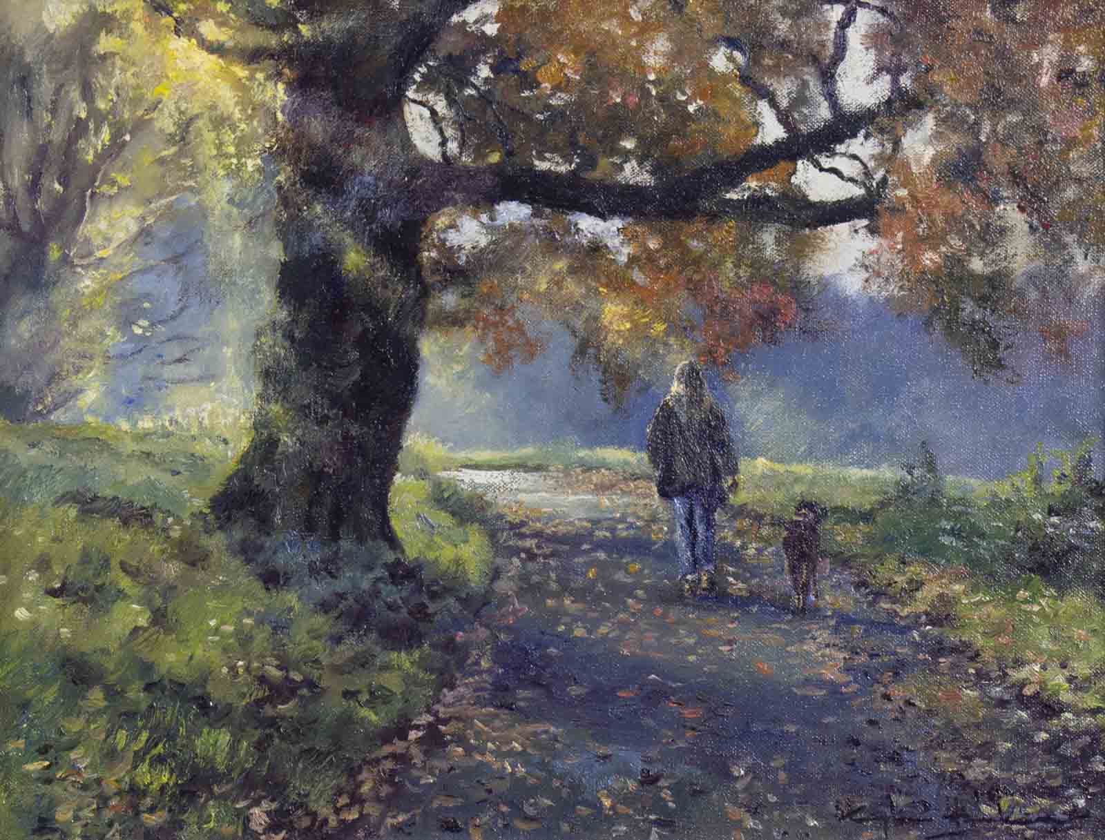 Since moving to Sussex around 20 years ago, Stephen has concentrated on landscapes, mainly of the South Downs and Sussex. These capture the subtle changes of light and shade, throughout the seasons. It is often through the changing light that Stephen captures the most magical moments in his paintings with shards of sunlight piercing the canopy overhead or highlighting one of the figures. The inclusion of sheep, cattle and horses in many of his landscapes helps to convey truthfully the peaceful atmosphere of modern day Downland life.