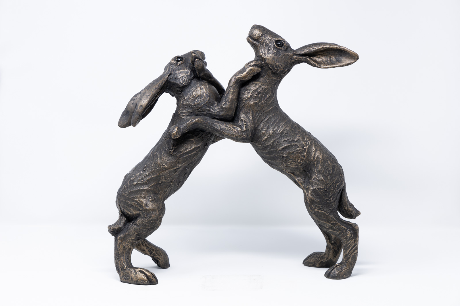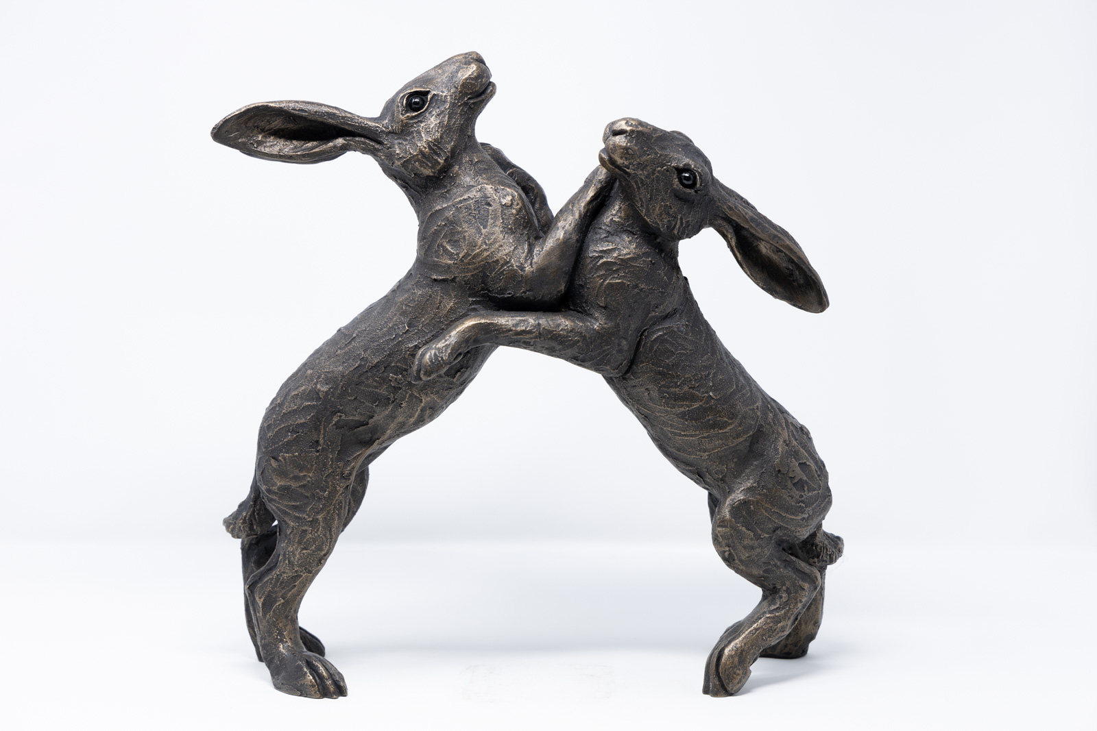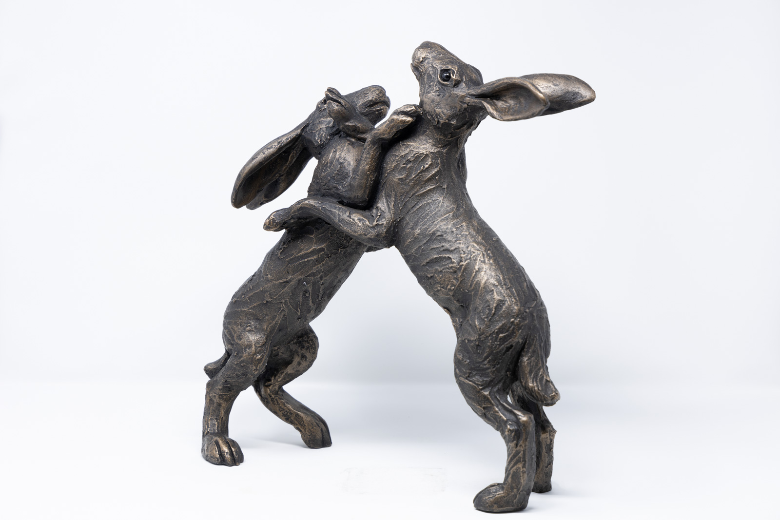 Dynamic duo of boxing hares by Suzie Marsh. Made in Britain, each sculpture is hand finished.