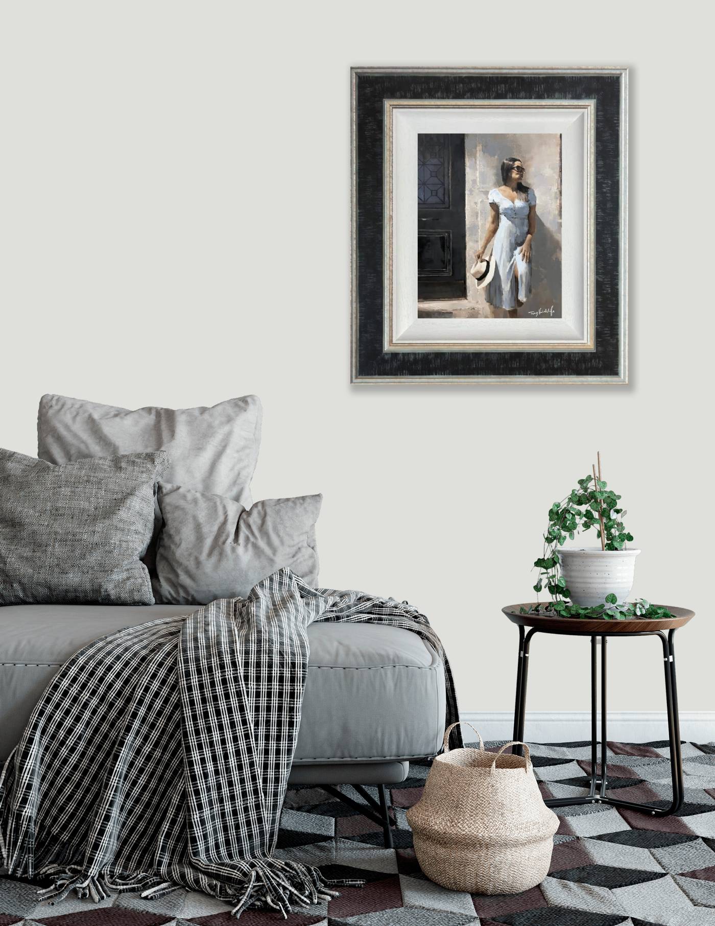 A wonderful studio edition by artist Tony Hinchliffe capturing the figurative form, limited to just 45. Embellished with rich overpaints and texturing varnish, unique brush marks and palette knife strokes build up each layer to form the final composition. Featuring the artist’s much loved painterly feel and harmonious palette, this artwork is framed with a white slip and beautiful decorated frame as shown and ready to hang.